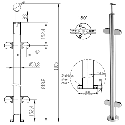 Also included is a flange, cover plate and a fixed saddle bracket for a 42.4mm hand rail.