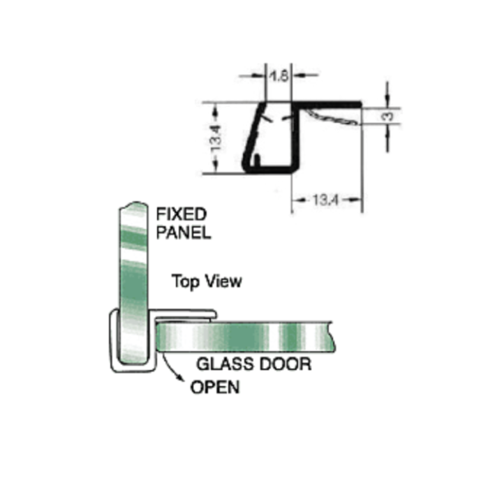 This 90 degree strike side shower seal is for creating a seal between the fixed panel and door in frameless shower door installations. Easy to install, snap on application.